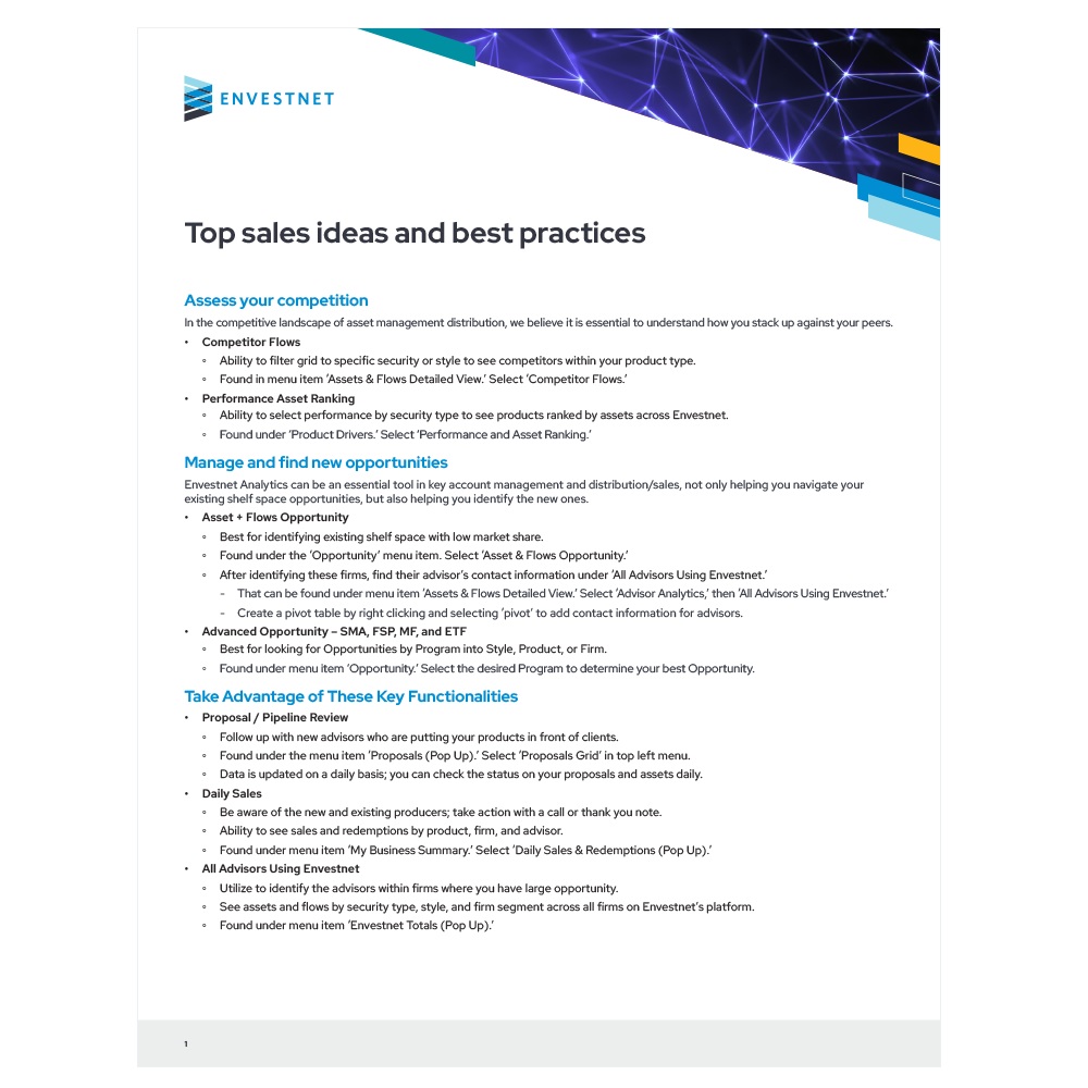 Discover how to leverage Envestnet Analytics with our top sales strategies and best practices. Unlock powerful insights to drive growth and success.