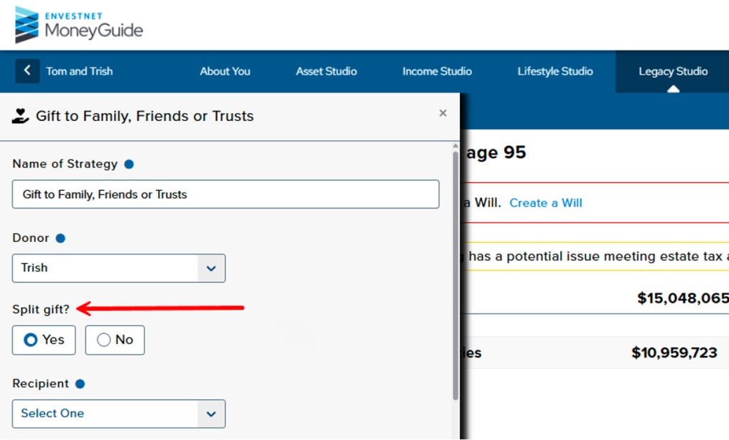 These updates allow advisors to model real-world estate strategies with greater realism and precision. For example, trust strategies now support gift splitting based on trust type, with specific logic for SLATs and Grantor-Retained Annuity Trusts (GRATs).